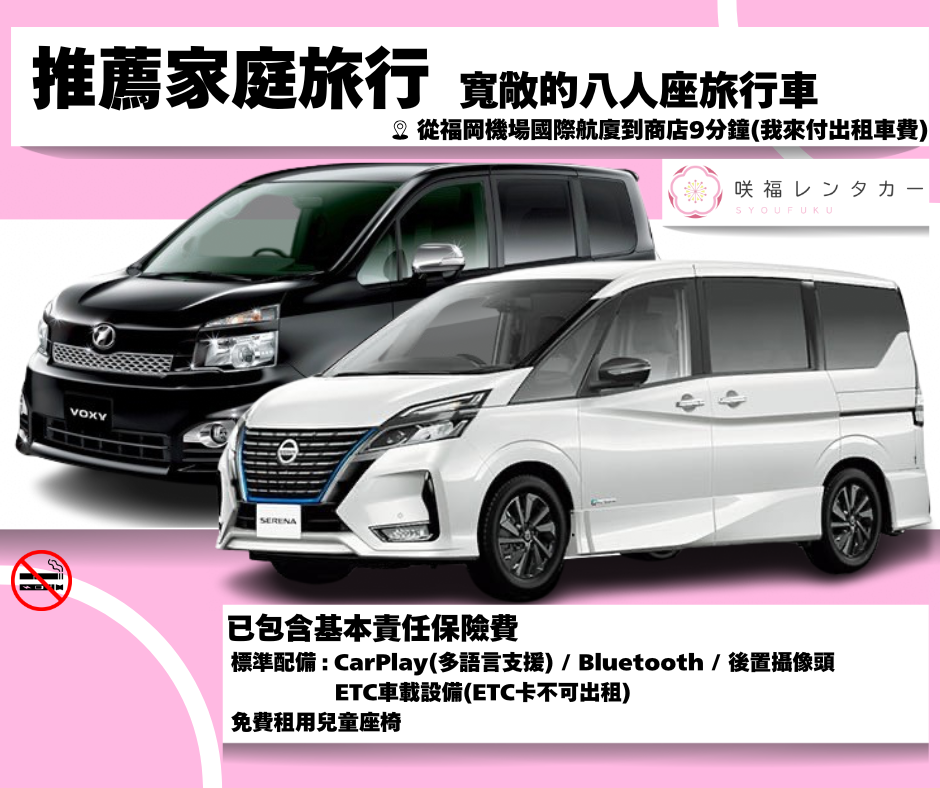[Minivan 8 seater type ]◼︎Non-smoking vehicle ◼︎Standard navigation system/ETC device (ETC card not included)/Backup camera included ◼︎Free shuttle service from the branch Plan Details[Minivan 8 seater type ]◼︎Non-smoking vehicle ◼︎Standard navigation system/ETC device (ETC card not included)/Backup camera included ◼︎Free shuttle service from the branch Plan Details