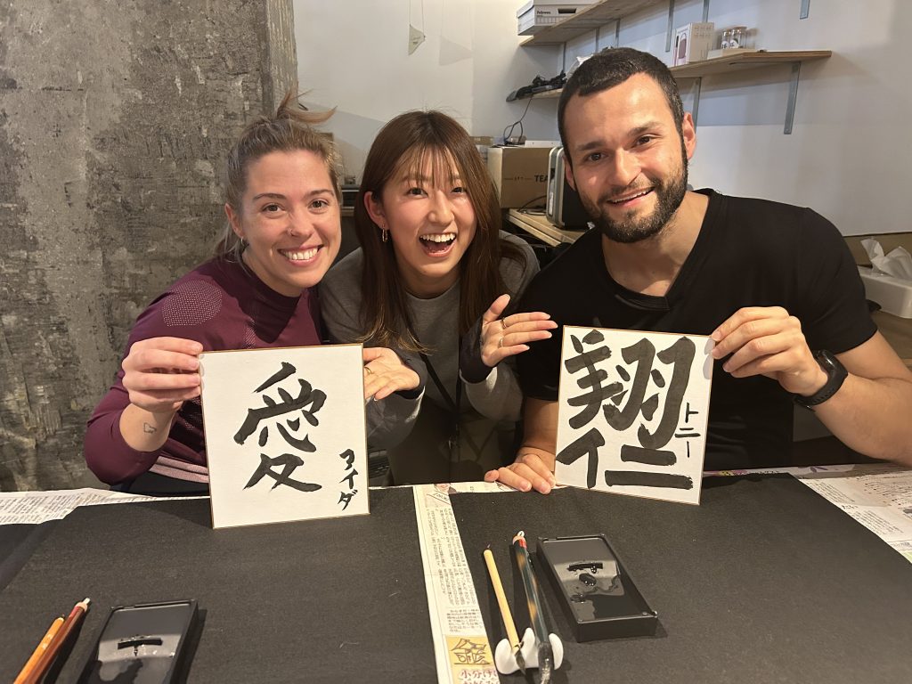 In the calligraphy experience, you will learn about the meaning and origins of kanji while expressing your own name or favorite words in kanji. The brushes used are Kumano brushes from Hiroshima, Japan’s most renowned brush-making region.